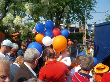 Koninginnedag 2011 op het Dorpsplein. Na het Wilhelmus en het Lied Van De Lie werden de ballonnen door de kinderen opgelaten. foto: Chris Buzink