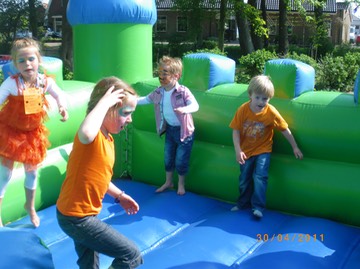 Koninginnedag 2001 op het Dorpsplein. Spelletjes voor jong en oud: Springkussen. foto: Chris Buzink