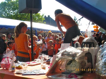 Koninginnedag 2011 op het Dorpsplein. De trekking van de loterij: veel prijzen. foto: Chris Buzink